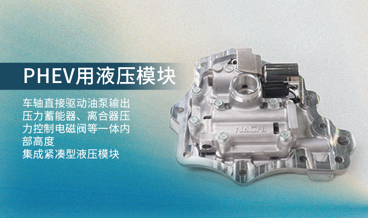 【用途】通過PHEV用液壓模塊高速切換發(fā)動機(jī)和電機(jī)控制方式以及離合器控制等 【特點】車軸直接驅(qū)動油泵輸出壓力蓄能器、離合器壓力控制電磁閥等一體內(nèi)部高度集成緊湊型液壓模塊 【應(yīng)用實績】三菱汽車歐藍(lán)德PHEV采用量產(chǎn)中長安汽車、東風(fēng)汽車采用預(yù)計2018年下半期投放市場